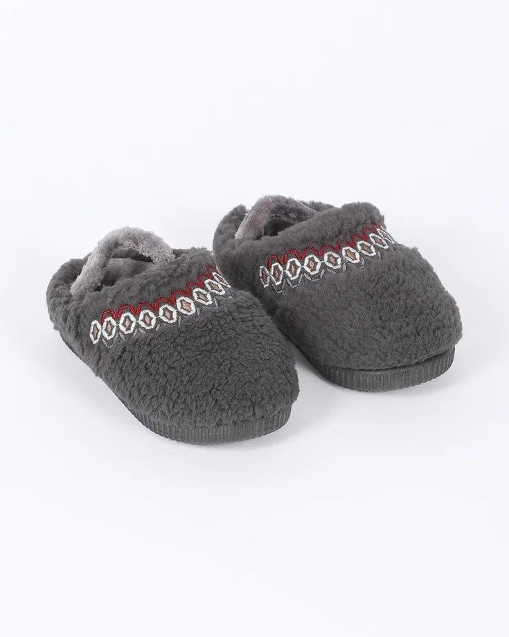 Çocuk Nakış Detaylı Antrasit Ev İçi Ayakkabı- Mahe