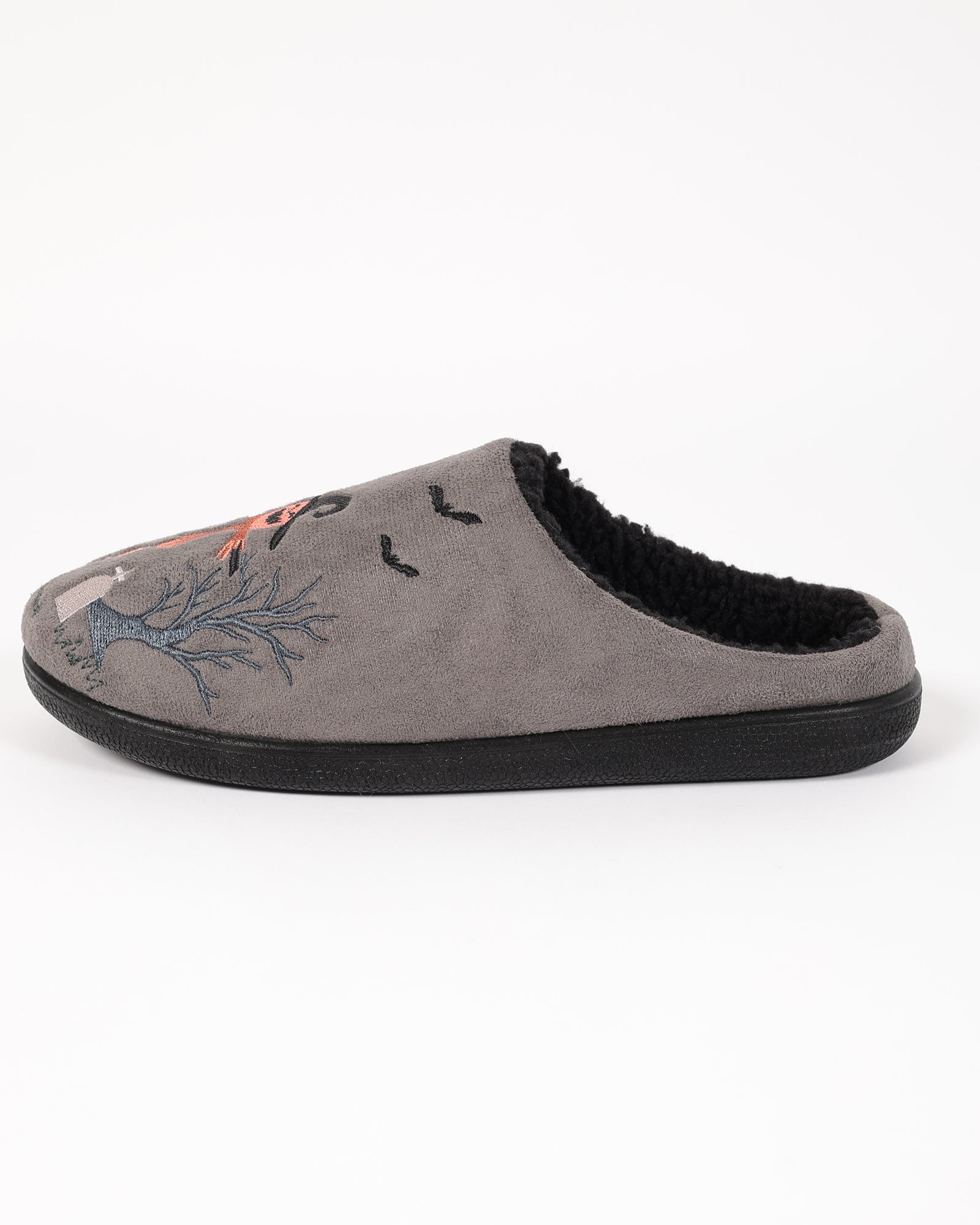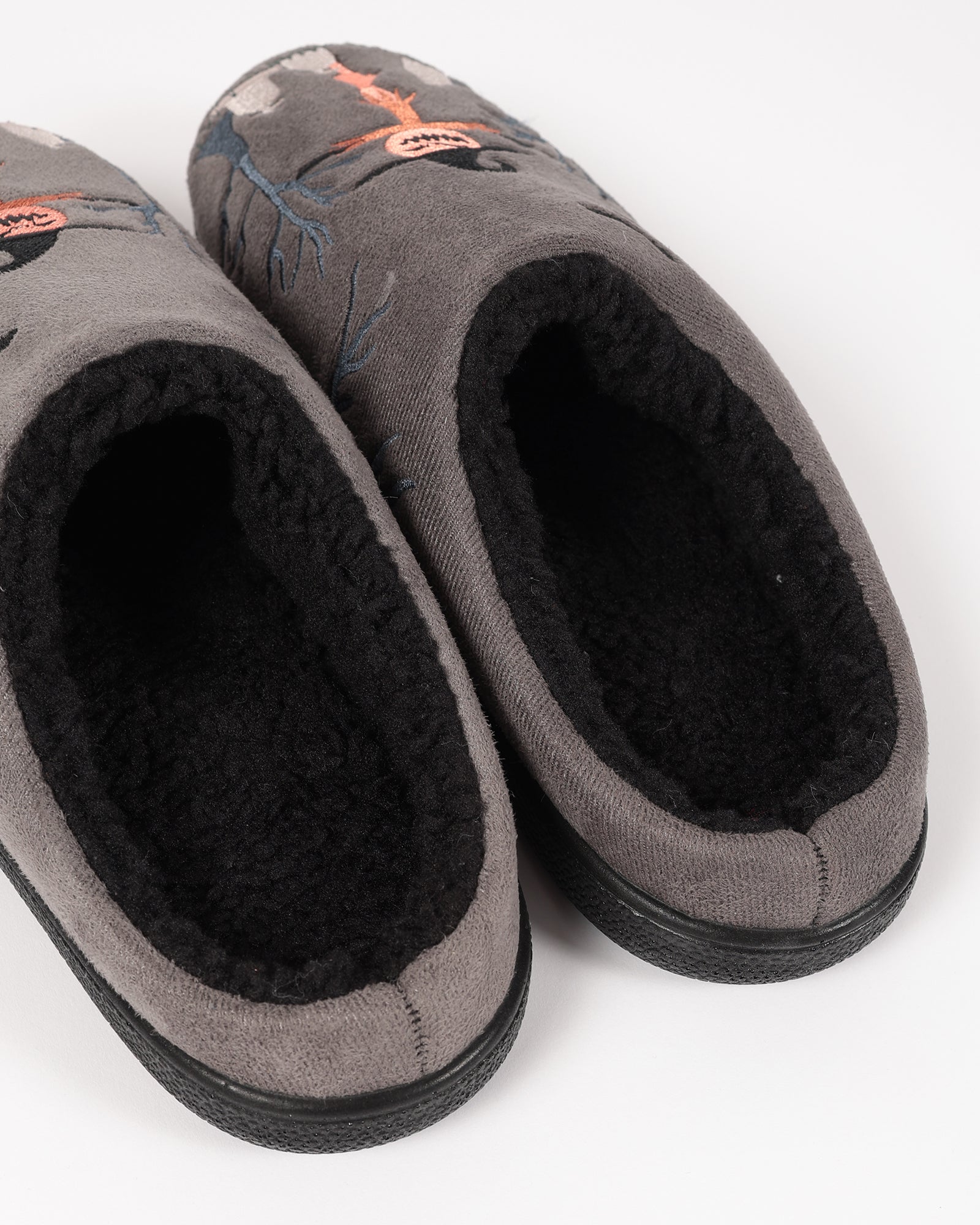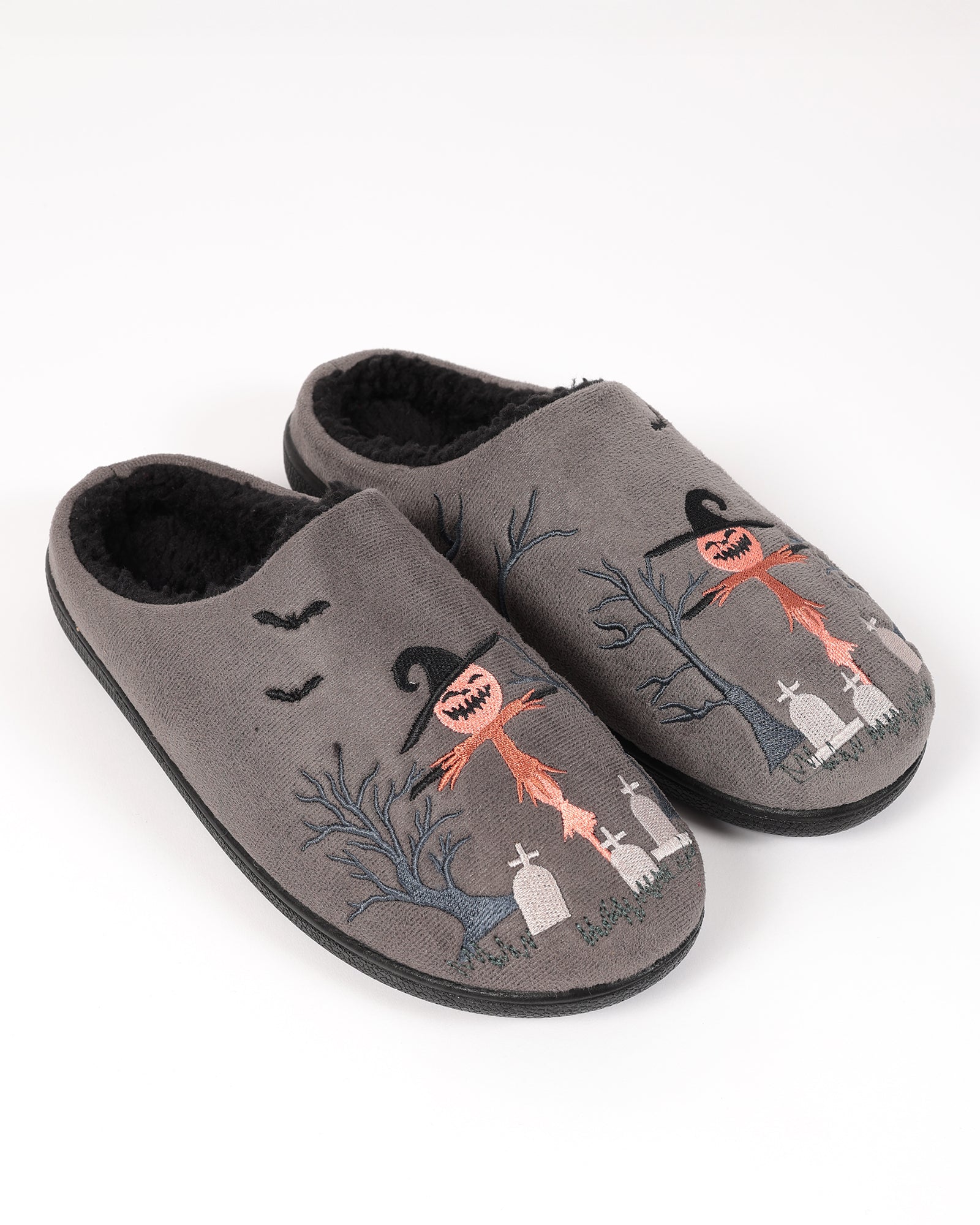 Soğuk kış günlerinde ayaklarınızı sıcacık tutan bu gri pelüş ev terliği, iç kısmındaki yumuşacık astarı sayesinde maksimum konfor sunar. Cadılar Bayramı temalı korkuluk nakış detaylarıyla eğlenceli bir tasarıma sahiptir. Kaymaz tabanı sayesinde güvenli bir kullanım sağlar.